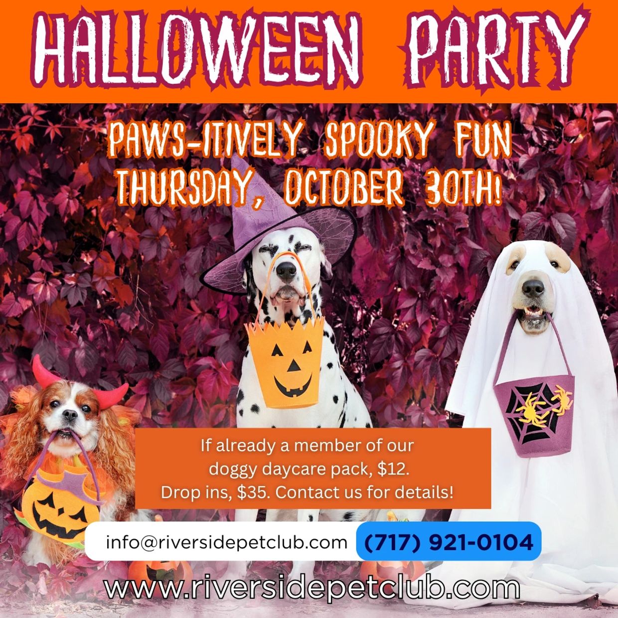 🎃🐾 HALLOWEEN PARTY at Riverside Doggy Daycare! 👻It’s going to be paws-itively spooky fun on Wednesday, October 30th!